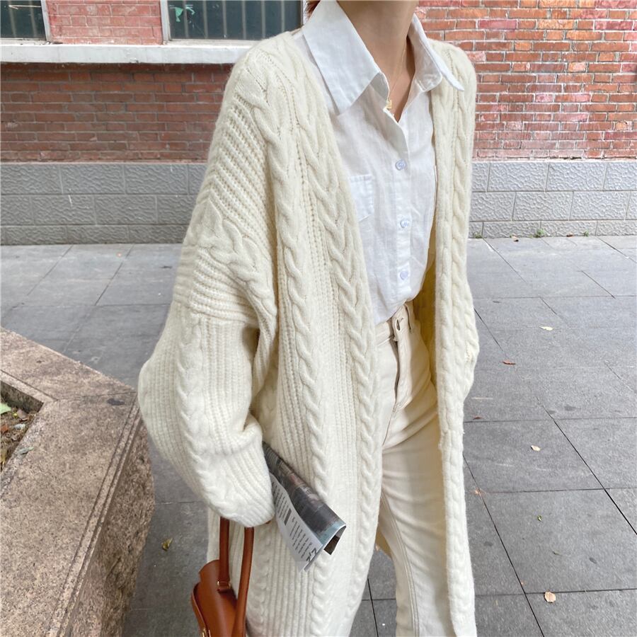 2色 トップス ニット カーディガン レディース 秋冬 カジュアル ゆったり 厚手 長袖 ひざ丈 ロング丈 ボリューム袖 萌袖 襟なし 前開き ケーブルニット 編み込み ざっくり ホワイト 白 ブラック 黒 ワンサイズ フリーサイズ かわいい 大人可愛い きれいめ シンプル 大人 上品 おしゃれ ナチュラル リラックス 無地 楽ちん 着回し 暖かい 防寒 普段使い 10代 20代 30代 40代 50代 こなれ感 ラフ ラブリー キュート ガーリー ルーズ 抜け感 オフィス 学生 デート お出かけ
