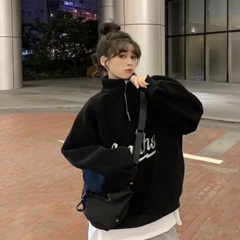 3色 アウター トップス プルオーバー フリース レディース 秋冬 カジュアル ゆったり 厚手 長袖 ボリューム袖 萌袖 スタンドネック BIGシルエット もこもこ ファスナー ハーフジップ ホワイト 白 ブラック 黒 ブラウン 茶色 ワンサイズ フリーサイズ ゆる 大人可愛い シンプル おしゃれ かっこいい リラックス 無地 英字ロゴ 楽ちん 着回し 暖かい 防寒 体型カバー 普段使い 10代 20代 30代 40代 こなれ感 ラフ ボーイッシュ スポーティー キュート ルーズ アウトドア 男女兼用