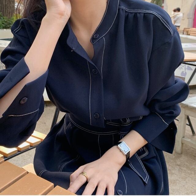 2色 ワンピース 長袖 春 秋 きれいめ カジュアル かわいい ロング aライン シャツワンピース Aライン フレア フレアスカート 膝下 ミディアム丈 ミドル丈 七分袖 ハイネック フレア 切り替えデザイン フリル ベルト ウエストマーク 前開き 2way ボタン 色展開 レッド ブルー S M L ゆったり ゆる かわいい 大人可愛い きれいめ シンプル カジュアル 大人 上品 おしゃれ ナチュラル 無地 コーデ スタイル 楽ちん 着回し 体型カバー 普段使い ラフ ラブリー キュート ガーリー