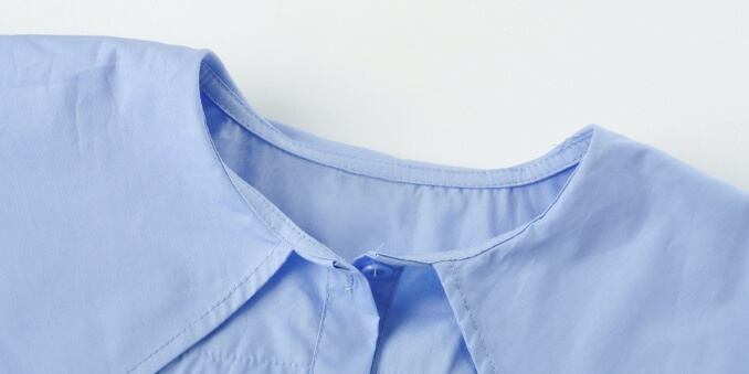 2色 トップス シャツ ブラウス チュニック レディース 夏 春 秋 かわいい カジュアル 長袖 ゆったり 長袖 ボリューム袖 萌袖 襟付き 大きな襟 ドールカラー ワイドカラー セーラーカラー BIGシルエット フレア セミフレア リボン 前開き 袖コンシャス 襟コンシャス 編み上げ 白 ホワイト 青 ブルー 水色 パステルカラー 春カラー ワンサイズ ジャスト かわいい 大人可愛い きれいめ シンプル カジュアル おしゃれ ナチュラル レトロ 無地 韓国 韓国系 オルチャン 韓国ファッション