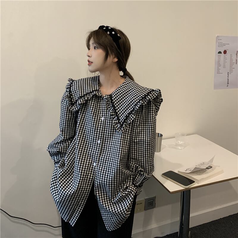 レトロ風 トップス シャツ ブラウス チュニック レディース 春 秋 かわいい カジュアル 白シャツ 長袖 ゆったり 長袖 ボリューム袖 フレアスリーブ 大きな襟 ドールカラー ワイドカラー ビッグカラー フリルカラー フレア セミフレア 裾イン フリル 前開き 白 ホワイト 黒 ブラック XL 2XL 3XL かわいい 大人可愛い きれいめ シンプル カジュアル おしゃれ ナチュラル レトロ 無地 韓国 韓国系 オルチャン 韓国ファッション 体型カバー 定番 普段使い インスタ映え