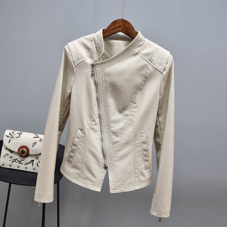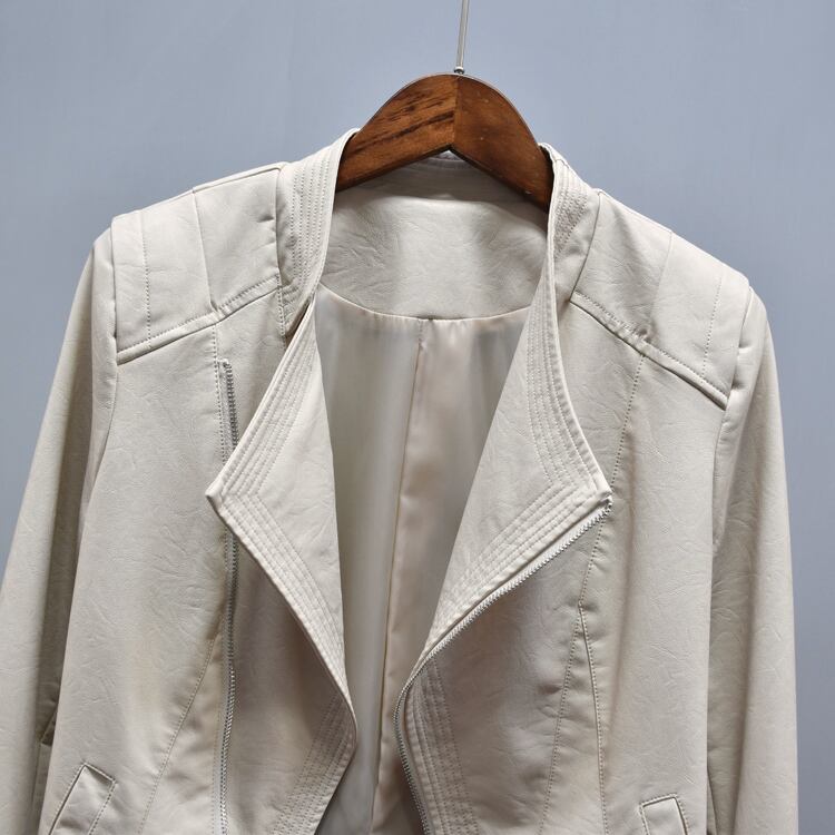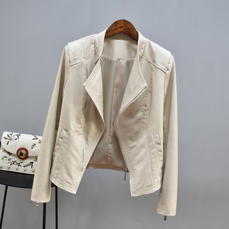 2色 アウター ジャケット レディース 秋冬 春 きれいめ 革ジャン フェイクレザー ショート丈 レギュラー丈 長袖 襟付き 大きな襟 ワイドカラー でか襟 ビッグカラー スリム タイト 細身 ストレート スマート ファスナー ポケット 前開き 黒 ブラック ベージュ 大人カラー 秋カラー M L XL 2XL 3XL 大人可愛い きれいめ シンプル カジュアル 大人 おしゃれ かっこいい 無地 韓国 韓国系 オルチャン ファッション スタイル 暖かい 防寒 体型カバー 定番 普段使い インスタ映え