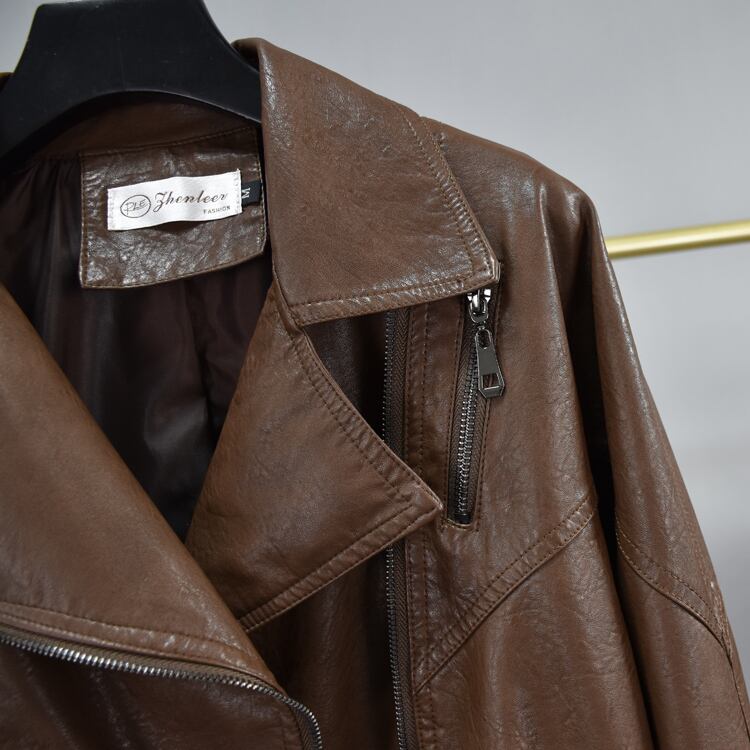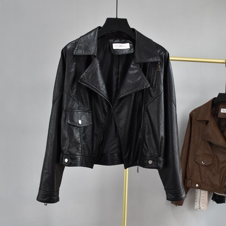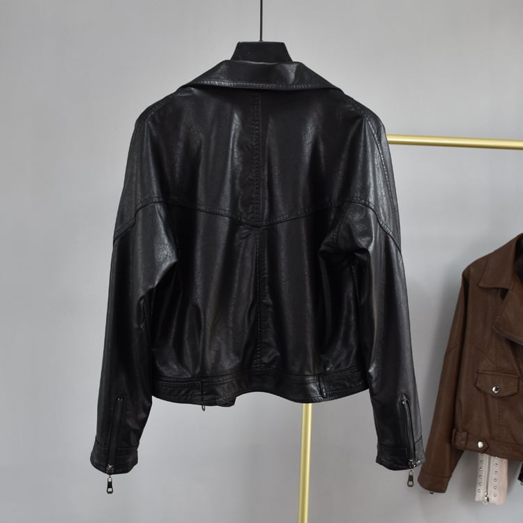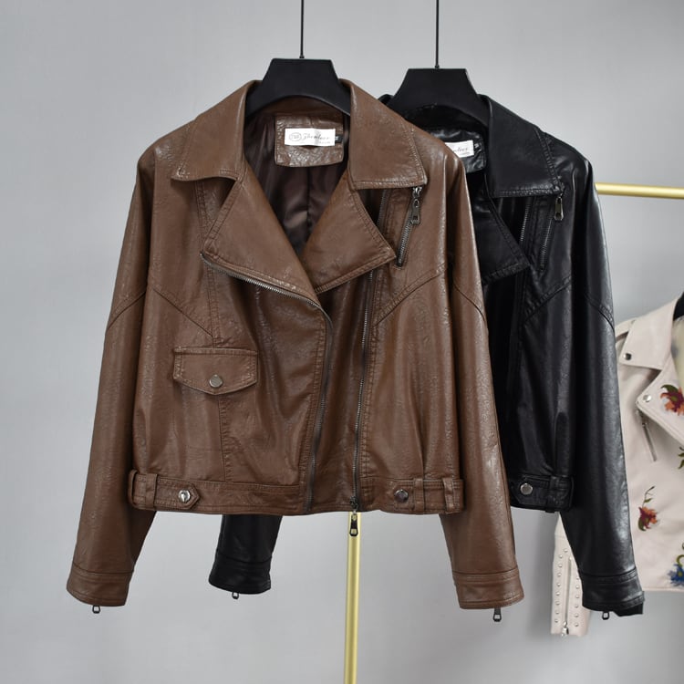 2色 アウター ジャケット レディース 秋冬 春 きれいめ 革ジャン フェイクレザー ショート丈 レギュラー丈 長袖 襟付き 大きな襟 ワイドカラー でか襟 ビッグカラー スリム タイト 細身 ストレート スマート ファスナー ポケット 前開き 黒 ブラック 茶色 ブラウン 大人カラー M L XL 大人可愛い きれいめ シンプル カジュアル 大人 おしゃれ かっこいい 無地 韓国 韓国系 オルチャン ファッション スタイル 暖かい 防寒 体型カバー 定番 普段使い インスタ映え こなれ感 ラフ