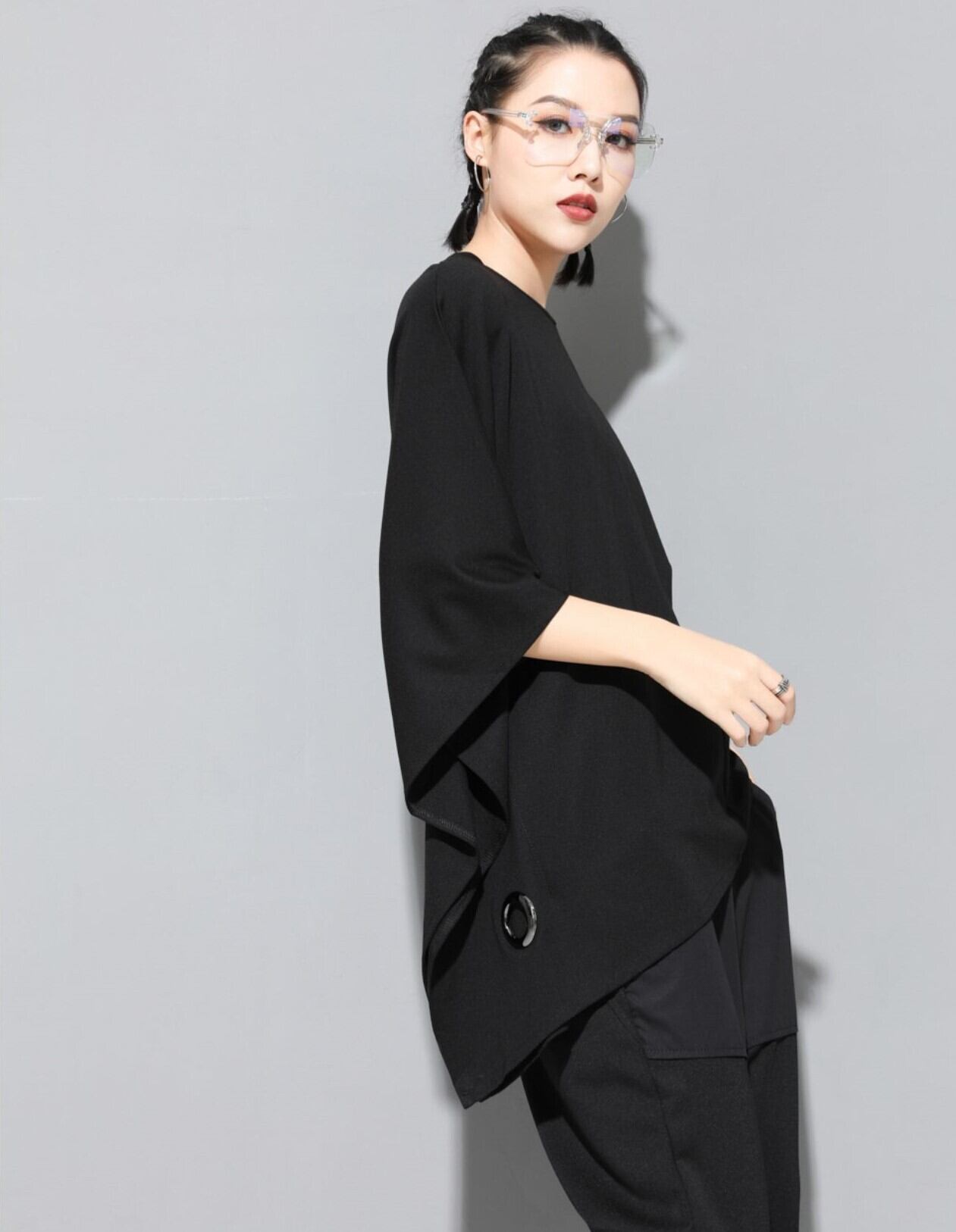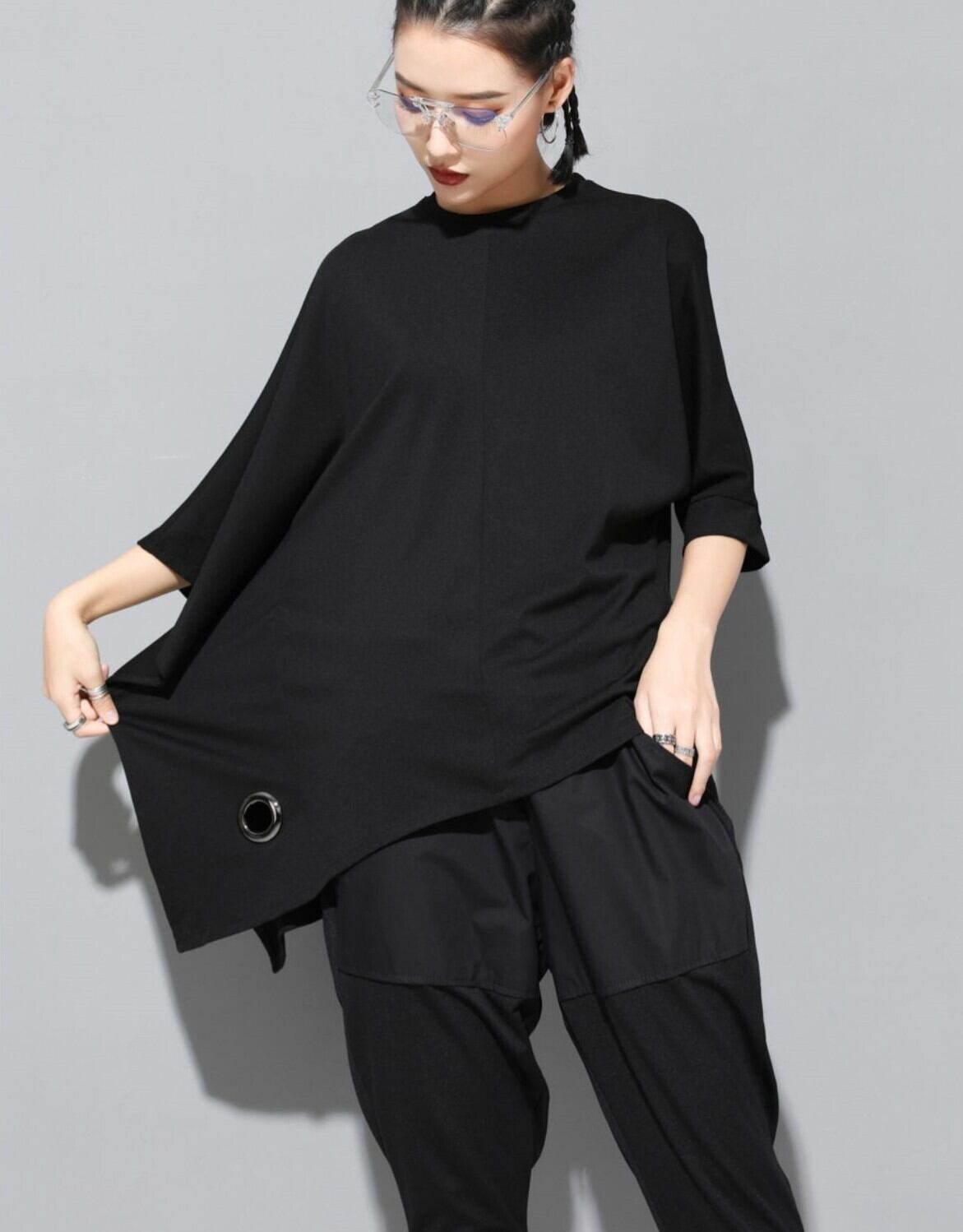 2色 トップス カットソー プルオーバー レディース 春 秋 きれいめ カジュアル オーバーサイズ ゆったり 大きめ 半袖 五分袖 七分袖 ドルマンスリーブ Uネック ラウンドネック BIGシルエット アシンメトリー 裾ワイド 透け感 シンプル 白 ホワイト 黒 ブラック モノトーン ワンサイズ きれいめ シンプル 大人 上品 おしゃれ ナチュラル かっこいい リラックス 無地 韓国 韓国系 オルチャン 韓国ファッション 着回し 体型カバー 定番 普段使い インスタ映え こなれ感 ラフ 個性的 クール