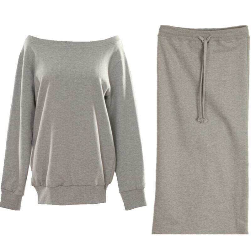 オフショルダースウェット&スカート レディース セットアップ おしゃれ ツーピース 長袖 ルーズ オフショルダー ワンショルダー 肩出し 個性 人気 かっこいい 大人女子 カジュアル お出かけ 女子会 デイリー スカート ミドル丈 ロングスカート 長袖シャツ セーター スリム シンプル 無地 プレーン 大きいサイズ 春 秋 10代 20代 30代 着回し スポーツスーツ ブラック 黒 グレー 灰色