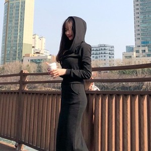 3色 セットアップ 長袖 春 秋 カジュアル タイトスカート ひざ丈 ミモレ丈 深 Vネック スリム タイト 細身 ストレート スリット バックスリット フード付き ファスナー 色展開 黒 ブラック 灰色 グレー ピンク S M L XL かわいい 大人可愛い きれいめ シンプル 大人 上品 リラックス 無地 スタイル 楽ちん 体型カバー 脚長 ラフ ラブリー キュート ガーリー 存在感 OL 通勤 学生 通学 デート お出かけ 女子会 休日 ショッピング 映画館 レディース