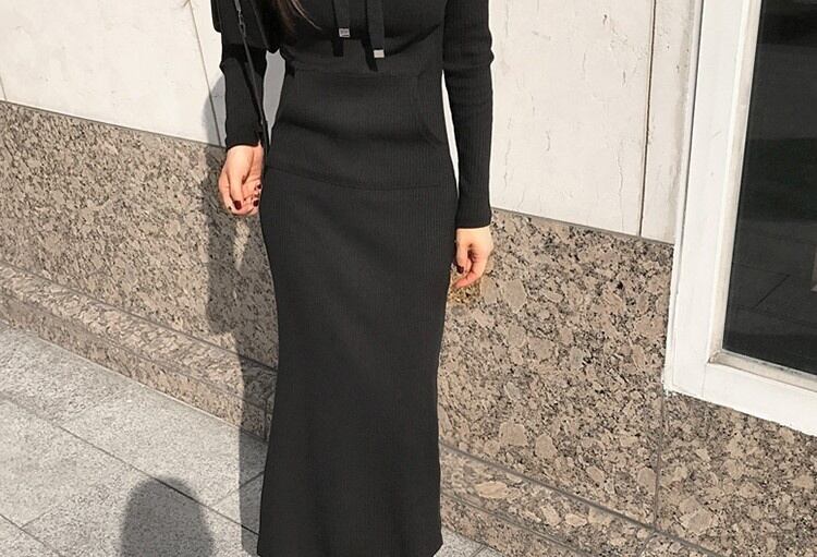 フード付きワンピース ワンピース 長袖 春 秋 冬 きれいめ カジュアル ロング ルームウェア ペンシルスカート コクーンスカート タイトスカート 膝下 ロング ロング丈 9分丈 アンクル丈 ミディアム丈 ミドル丈 レギュラー丈 萌袖 スリム タイト 細身 ストレート Iライン スマート フード付き ファスナー ポケット 伸縮性 黒 ブラック モノトーン S M L XL きれいめ シンプル カジュアル 大人 おしゃれ ナチュラル かっこいい 無地 韓国 韓国系 オルチャン 韓国ファッション スタイル