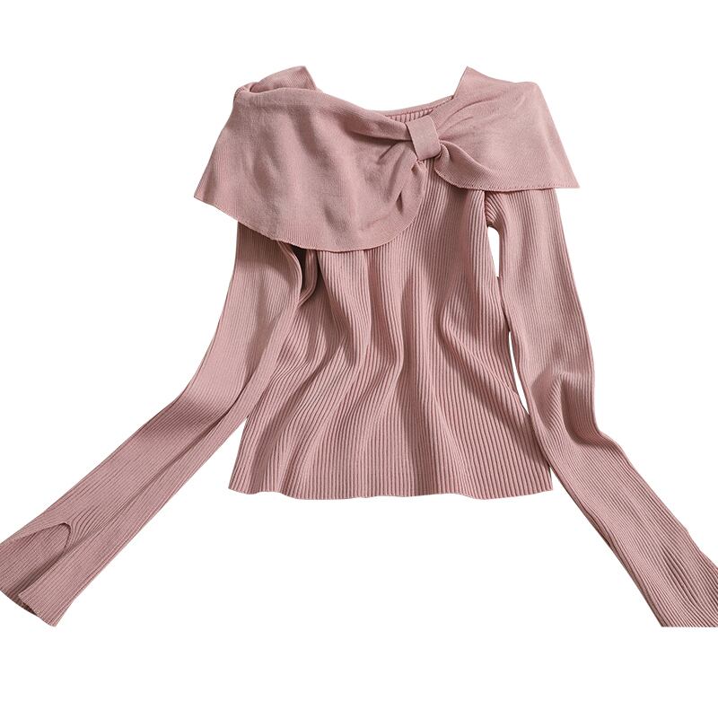 4色 トップス ブラウス カットソー ニット プルオーバー チュニック レディース 春 秋 かわいい 長袖 ボリューム袖 萌袖 Uネック ラウンドネック スリム ストレート リボン リブ リブニット 白 ホワイト 黒 ブラック ベージュ ピンク くすみカラー ワンサイズ かわいい 大人可愛い きれいめ シンプル 大人 上品 おしゃれ ナチュラル 無地 韓国 韓国系 オルチャン 韓国ファッション 楽ちん 体型カバー 定番 普段使い こなれ感 ラフ ラブリー キュート ガーリー 主役級 存在感 フォーマル