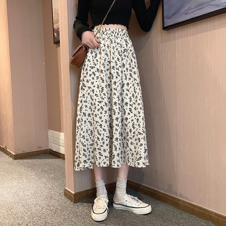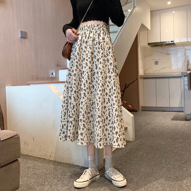 レトロ感小花柄スカート 2色 スカート ボトムス 春 夏 秋 きれいめ カジュアル レディース プリーツスカート フレアスカート 7分丈 ミディアム丈 ミドル丈 レギュラー丈 花柄 小花柄 フラワー リーフ柄 ウエスト ゴム シフォン ハイウエスト 白 ホワイト 黒 ブラック モノトーン かわいい 大人可愛い きれいめ シンプル カジュアル 大人 上品 おしゃれ お洒落 かっこいい ワンサイズ こなれ感 ラブリー キュート ガーリー レディース ママ 20代 30代 着回し 普段使い 韓国 韓国系