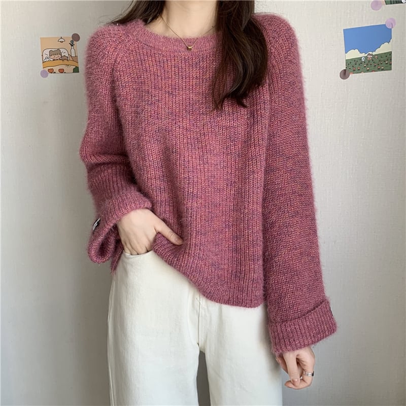 ラフ感がありシンプルなデザインの長袖ニットセータです。