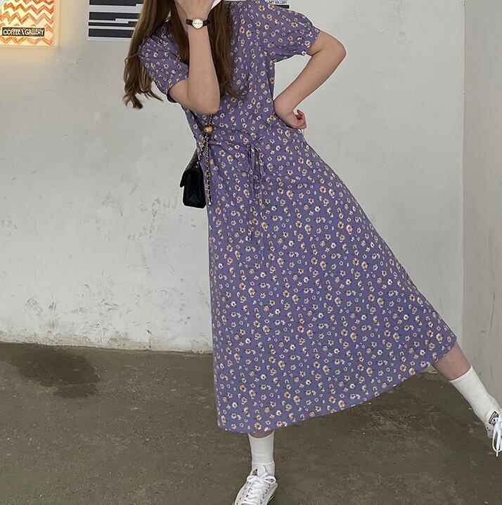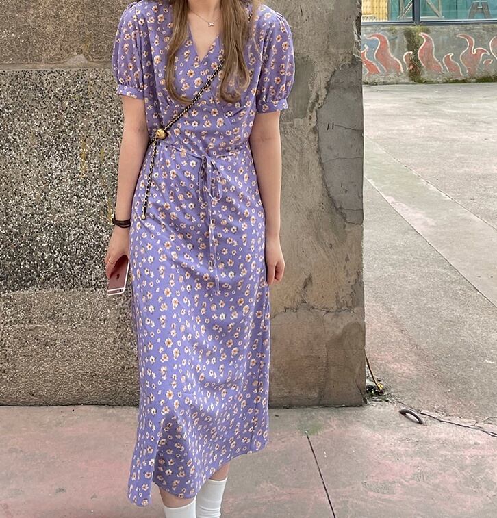 レトロ風ワンピース レディース お出かけ 可愛い シフォン ドレス ワンマイルウェア リモート飲み会 体型カバー 上品 女子会 お出かけ 買い物 ショッピング 食事会 パーティー ワンピース シャツ 大人カジュアル 春 秋 Vネック ミドル丈 セクシー 10代 20代 30代 パープル