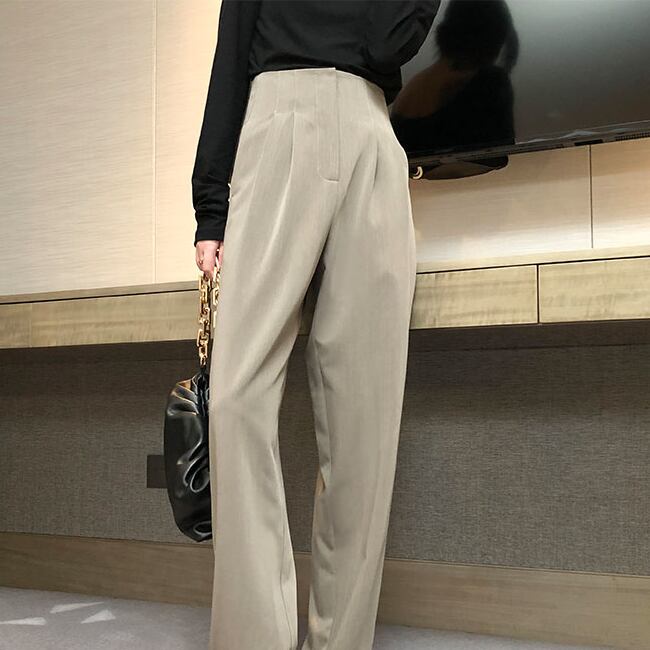 少しマニッシュな雰囲気を放つ、レディースワイドレッグパンツ。