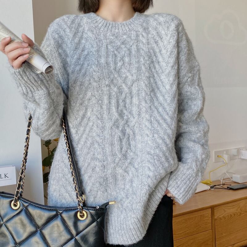 ワンカラー トップス カットソー ニット セーター チュニック 秋冬 かわいい きれいめ カジュアル オーバーサイズ ゆったり 長袖 ボリューム袖 萌袖 Uネック ラウンドネック BIGシルエット 裾ワイド もこもこ ふわふわ ケーブルニット シンプル 灰色 グレー S M L かわいい 大人可愛い きれいめ シンプル カジュアル 大人 上品 おしゃれ ナチュラル かっこいい レトロ 柄 韓国 韓国系 オルチャン 韓国ファッション 着回し 体型カバー 定番 普段使い インスタ映え こなれ感 ラフ