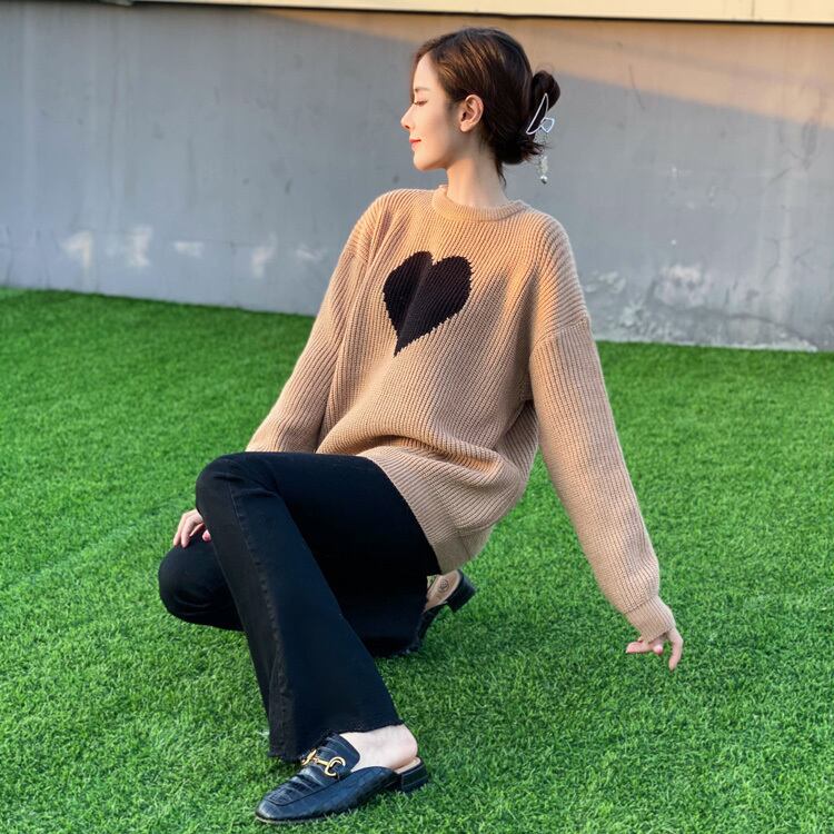 胸元の大きなハートがアクセントとなるレディースセーター。
