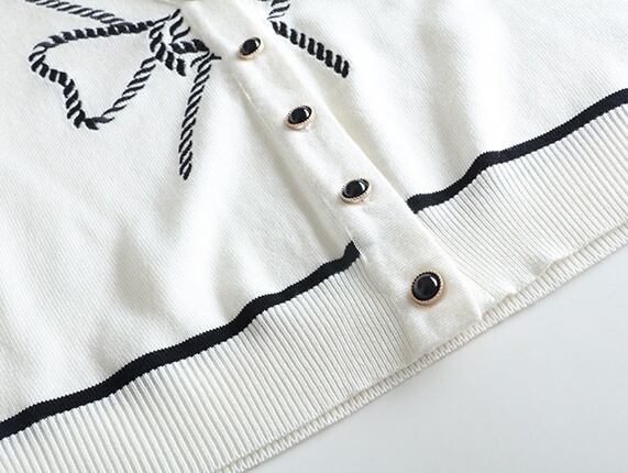 ロープボウニットカーディガン 2色 レトロ風 トップス ニット カーディガン 冬 春 秋 かわいい きれいめ カジュアル ショート ショート丈 長袖 萌袖 Vネック ボタンダウン スリム タイト 細身 ストレート 刺繍 くるみボタン 白 ホワイト 黒 ブラック 大きいサイズ フリーサイズ かわいい 大人可愛い きれいめ シンプル カジュアル 大人 上品 おしゃれ ナチュラル レトロ 柄 リボン 韓国 韓国系 オルチャン 韓国ファッション 体型カバー 定番 普段使い インスタ映え こなれ感 ラフ ラブリー