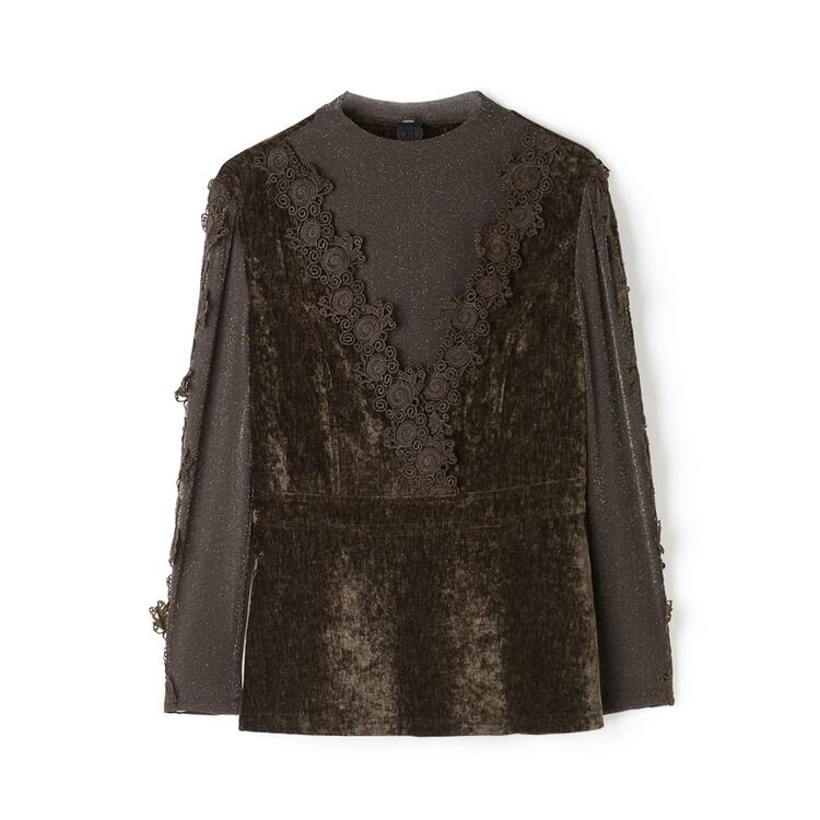 ベロア調の柔らかい素材感とレースが上品なセットアップ。
