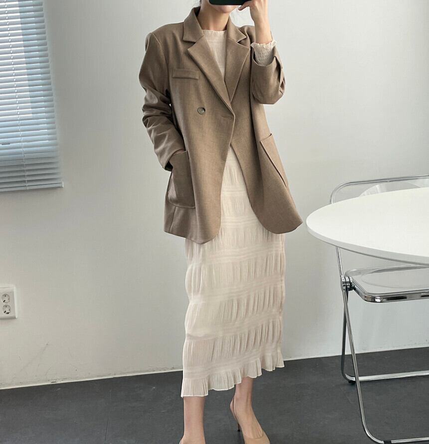 プリーツの縦ラインは着痩せ効果も抜群です。