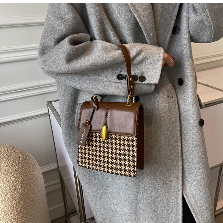 ハンドバッグ 磁気バックル 無地 千鳥格子 レディース 女性用 スモールバッグ スクエアバッグ ワンサイズ ブラック ブラウン ブラック千鳥格子 ブラウン千鳥格子 ソフト シンプル かわいい 全年齢 通勤 OL 社会人 大人女子 大人可愛い エレガント 上品 カジュアル オフィス デート お出かけ 女子会 買い物 ショッピング 日常使用 デイリーユース 普段使い