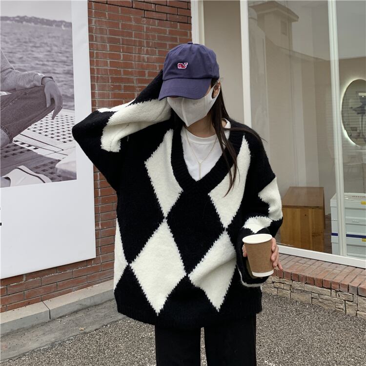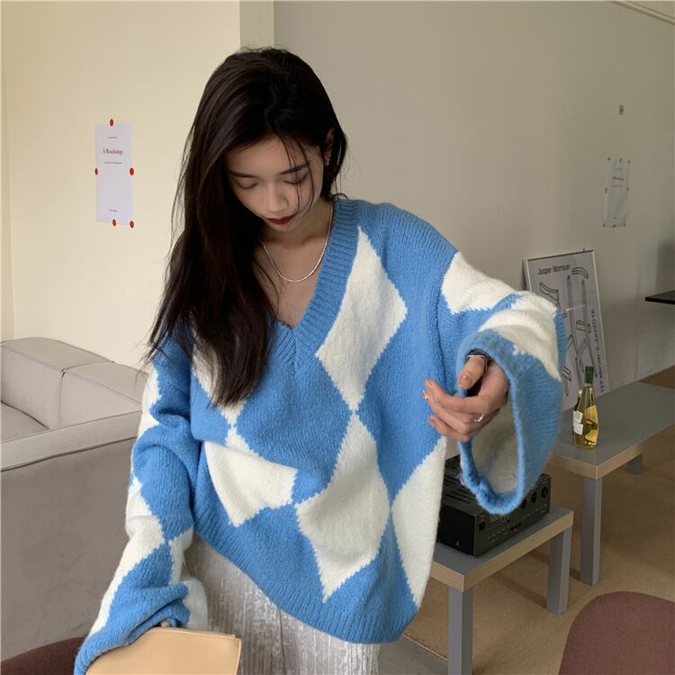 ぶかぶかの袖が可愛らしいレディースVネックセーター♪