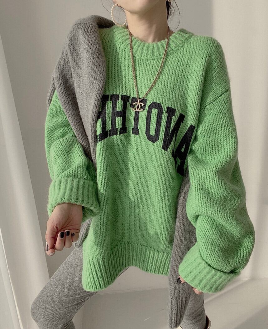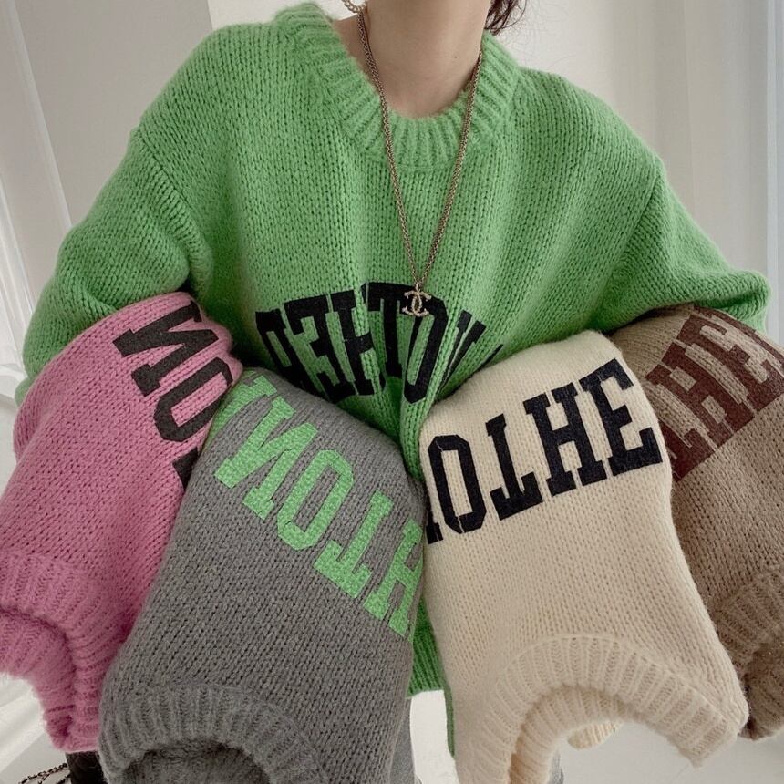 5色 トップス ニット セーター レディース 秋冬 カジュアル ゆったり オーバーサイズ ゆったり 大きめ 長袖 ボリューム袖 萌袖 Uネック ラウンドネック BIGシルエット もこもこ モコモコ ふわふわ 編み込み プルオーバー 緑 グリーン 茶色 ブラウン 灰色 グレー ピンク パステルカラー くすみカラー 大人カラー 春カラー 秋カラー アプリコット ワンサイズ ゆったり かわいい 大人可愛い シンプル カジュアル おしゃれ ナチュラル かっこいい リラックス 英字 コーデ スタイル 楽ちん