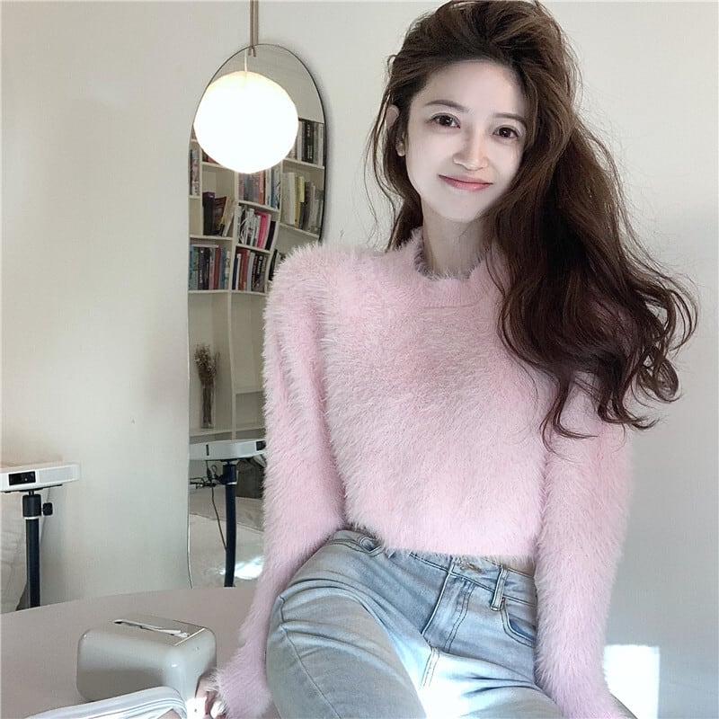 3色 トップス ニット セーター レディース 秋冬 かわいい 長袖 ショート へそ出し 長袖 萌袖 ラウンドネック モコモコ ふわふわ プルオーバー 色展開 白 ホワイト 緑 グリーン ピンク ワンサイズ ジャスト サイズ かわいい 大人可愛い きれいめ シンプル カジュアル 大人 おしゃれ 無地 スタイル 着回し 暖かい 普段使い 10代 20代 30代 ラブリー キュート ガーリー 個性的 OL 学生 デート お出かけ 女子会 休日 イベント 旅行 レディース 女性用 高校生 OL 学生