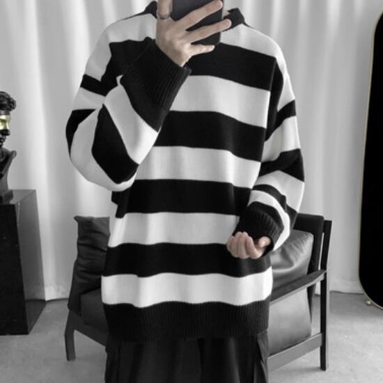 セーター レディース 丸首 ボーダー あったか 大きいサイズ オーバーサイズ ダボダボラウンドネック プルオーバー ウォーム 袖あり 長袖 S M L XL 2XL 5サイズ ブルー ブラック グレー レッド 秋 冬 カジュアル 大人可愛い 大人女子 可愛い オシャレ お洒落 10代 20代 散歩 デイリーユース 普段使い 日常使用 買い物 休日 通学 学生