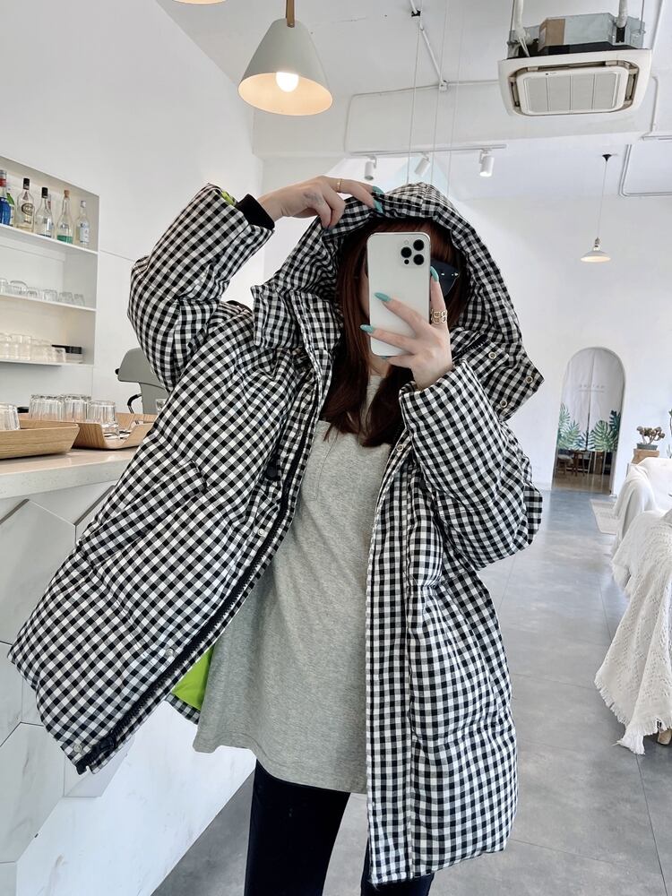 2色 アウター ジャケット レディース ミドル丈 長袖 ハイネック フード BIGシルエット ウエストマーク フード付き ファスナー ポケット 色展開 黒 ブラック 茶色 ブラウン サイズ S M L XL 2XL 3XL 大きいサイズ ゆったり かわいい 大人可愛い シンプル カジュアル おしゃれ チェック柄 ファッション コーデ スタイル 楽ちん 暖かい 防寒 体型カバー 普段使い ラフ ラブリー キュート ガーリー 主役級 存在感 OL 通勤 学生 通学 デート お出かけ 女子会 休日 イベント