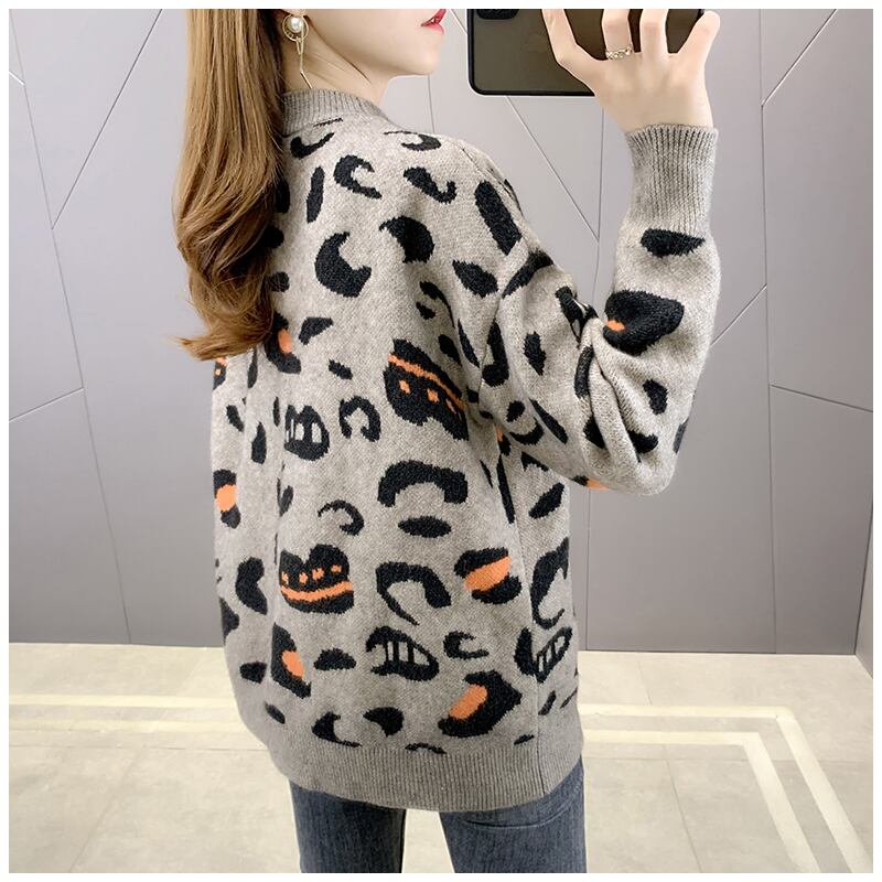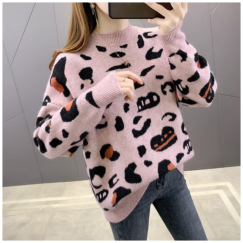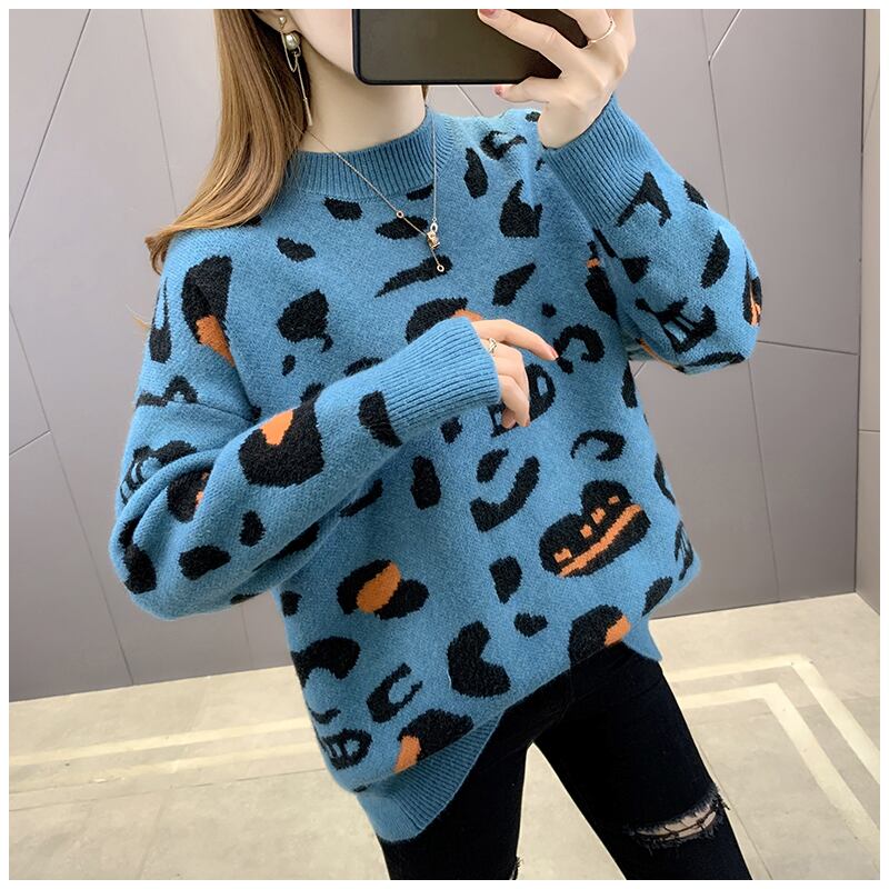 大胆なレオパードの模様がインパクトを与えるレディースセーター。
