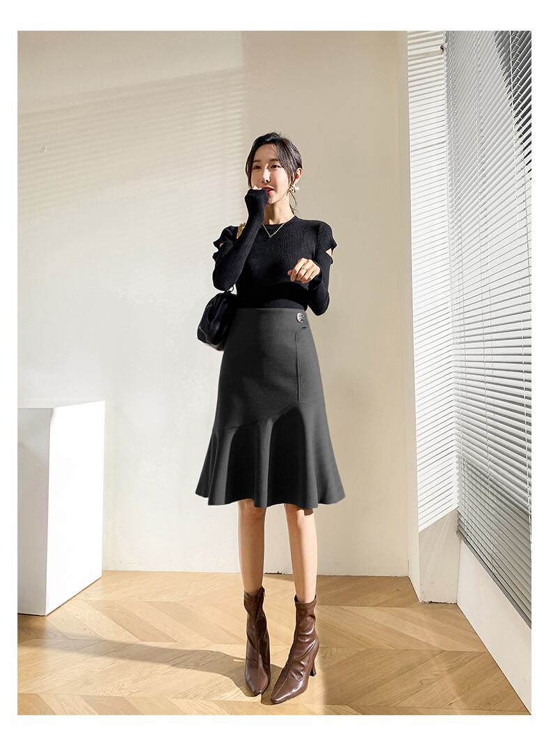 2色 スカート 秋冬 きれいめ フィッシュテールスカート ひざ丈 無地 ハイウエスト 切り替えデザイン 黒 ブラック 茶色 ブラウン かわいい 大人可愛い きれいめ シンプル 大人 上品 おしゃれ お洒落 サイズ S M L XL キュート ガーリー クール 主役級 存在感 レディース 女性用 ママ OL 学生 10代 20代 30代 謝恩会 二次会 披露宴 ファッション コーデ スタイル 美脚 脚長 オフィス ビジネス 通勤 デート お出かけ 女子会 パーティー 旅行 レストラン ショッピング