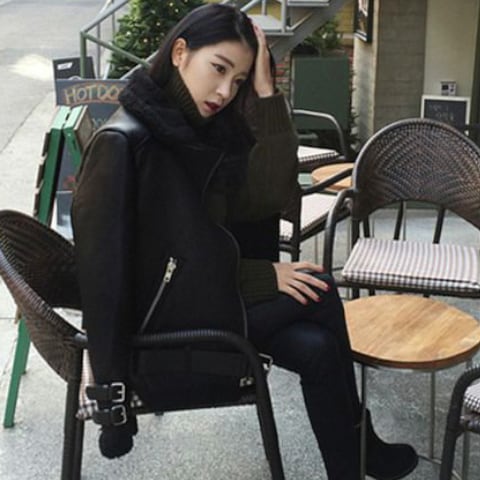 ふわふわのファーが付いた大人可愛いライダースジャケット。