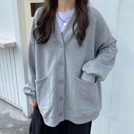 3色 トップス カーディガン レディース 秋冬 かわいい オーバーサイズ 大きめ 長袖 萌袖 ラグラン Vネック ノーカラー 前開き 黒 ブラック 青 ブルー 灰色 グレー M L XL ゆったり ゆる かわいい カジュアル おしゃれ ナチュラル かっこいい リラックス 無地 韓国 韓国系 オルチャン ファッション コーデ 楽ちん 着回し 暖かい 防寒 体型カバー 普段使い 重ね着 お揃い 双子 こなれ感 ラフ メンズライク ボーイッシュ スポーティー 抜け感 学生 通学 公園デビュー 休日