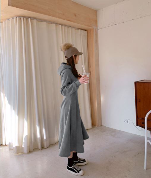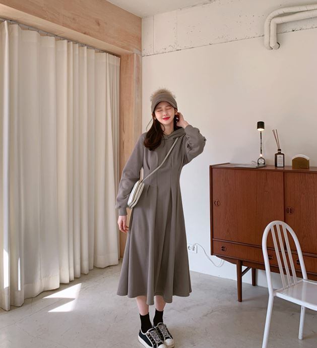 3色 ワンピース 長袖 春 秋 カジュアル aライン フレア 膝下 ミモレ ミモレ丈 フレア 細身 Aライン 裾ワイド フード付き ハイウエスト 黒 ブラック ブラウン 灰色 グレー S M L XL ジャスト かわいい 大人可愛い カジュアル 大人 おしゃれ ナチュラル リラックス 無地 韓国系 コーデ スタイル 楽ちん 着回し モテ 体型カバー 脚長 普段使い トレンド こなれ感 ラフ 主役級 存在感 抜け感 オフィス OL 通勤 学生 通学 ママコーデ デート