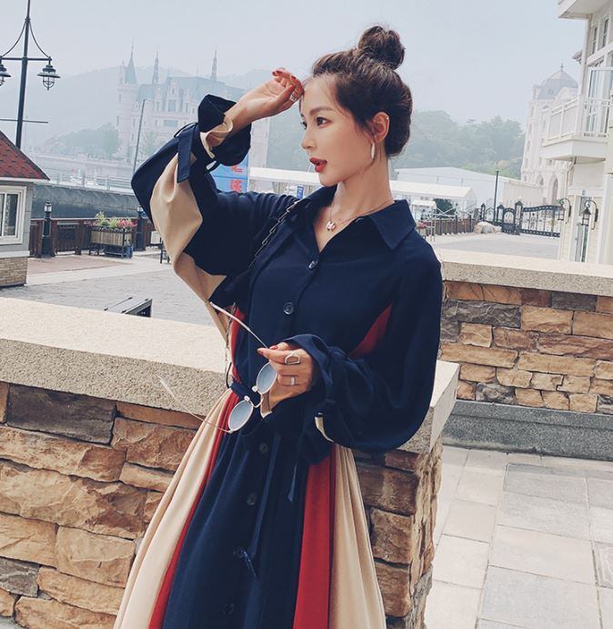 レトロ風 ワンピース 長袖 春 秋 きれいめ シャツワンピース Aライン フレア 9分丈 アンクル丈 襟付き 角襟 フレア 細身 裾ワイド ウエストリボン ポケット 前開き ネイビー S M L ジャスト 大人可愛い きれいめ 大人 おしゃれ レトロ 無地 韓国系 コーデ スタイル 楽ちん モテ 体型カバー 脚長 普段使い インスタ映え こなれ感 エレガント 主役級 存在感 とろみ感 抜け感 オフィス ビジネス OL 通勤 ママコーデ デート お出かけ 女子会 休日 レディース 女性用 ママ