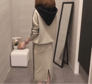 2色 セットアップ 長袖 春 秋 冬 カジュアル ペンシルスカート ニットスカート ミモレ ミモレ丈 襟なし スリム 細身 Iライン スリット バックスリット フード付き ハイウエスト 緑 グリーン ベージュ 大人カラー バイカラー S M L XL ジャスト 大人可愛い シンプル カジュアル 大人 おしゃれ ナチュラル 無地 韓国ファッション コーデ スタイル 楽ちん 着回し モテ 体型カバー 脚長 普段使い トレンド インスタ映え 重ね着 こなれ感 スポーティー エレガント モダン 主役級 抜け感