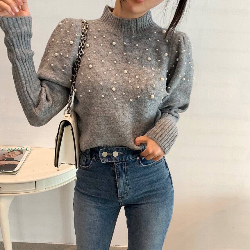 2色 トップス ニット セーター 秋冬 きれいめ 長袖 ショート丈 長袖 パフスリーブ ハイネック スリム 細身 リブ リブニット 黒 ブラック 灰色 グレー 大人カラー モノトーン ワンサイズ 大人可愛い きれいめ シンプル 大人 上品 おしゃれ 無地 韓国ファッション コーデ スタイル 楽ちん 着回し モテ 体型カバー 脚長 普段使い トレンド 10代 20代 30代 キュート ガーリー 個性的 エレガント 主役級 存在感 ビジネス OL 通勤 学生 通学 デート お出かけ 女子会