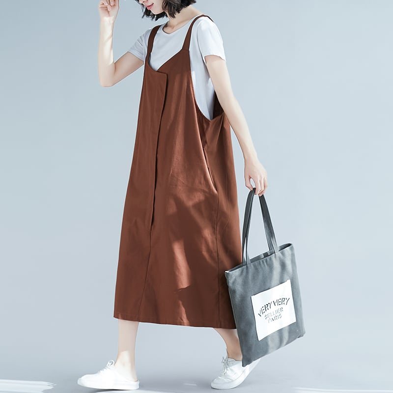 2色 ワンピース ノースリーブ 春夏 カジュアル 大きいサイズ ロング ジャンパースカート 膝下 ミモレ ミモレ丈 ワイド Aライン ポケット 黒 ブラック 茶色 ブラウン L XL 2XL 大きいサイズ 大きい 大きめ ビッグサイズ ゆったり ゆる かわいい 大人可愛い きれいめ シンプル カジュアル 大人 ナチュラル 無地 楽ちん 体型カバー 重ね着 ラフ ガーリー OL 学生 ママコーデ 女子会 休日 オールシーズン レディース 女性用 ママ マタニティ 高校生 OL 学生 ぽっちゃり 10代