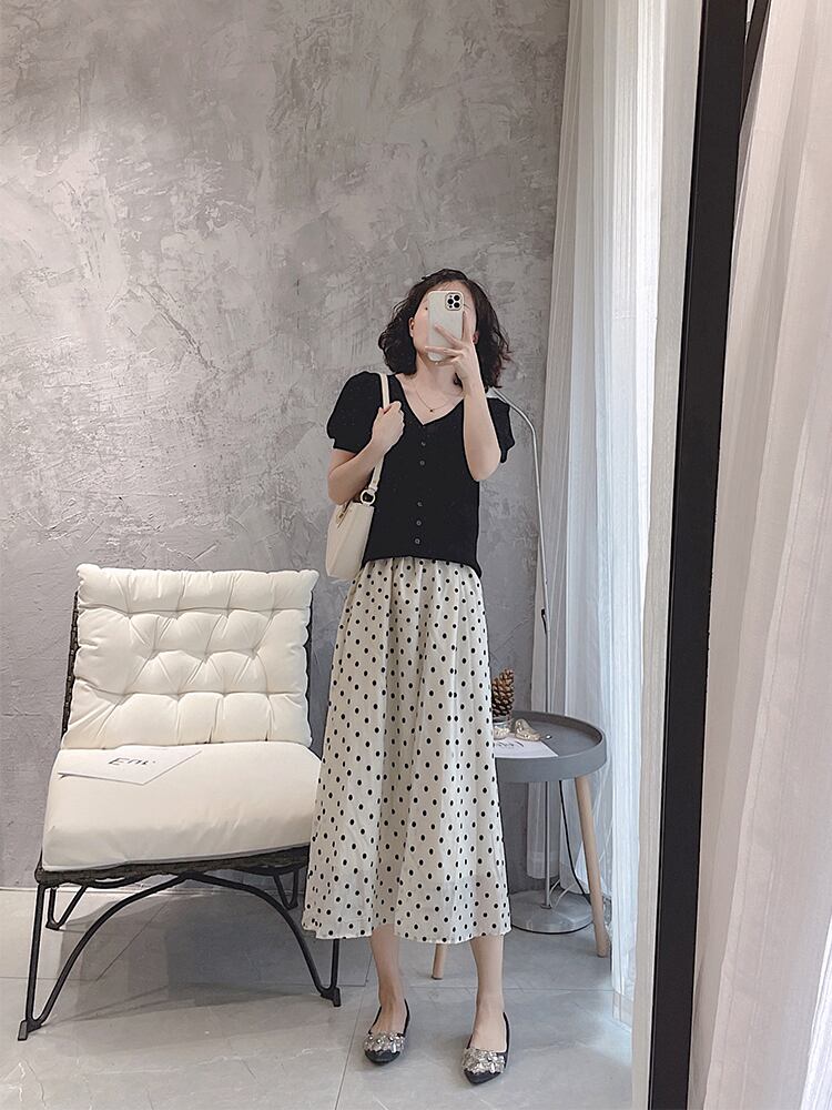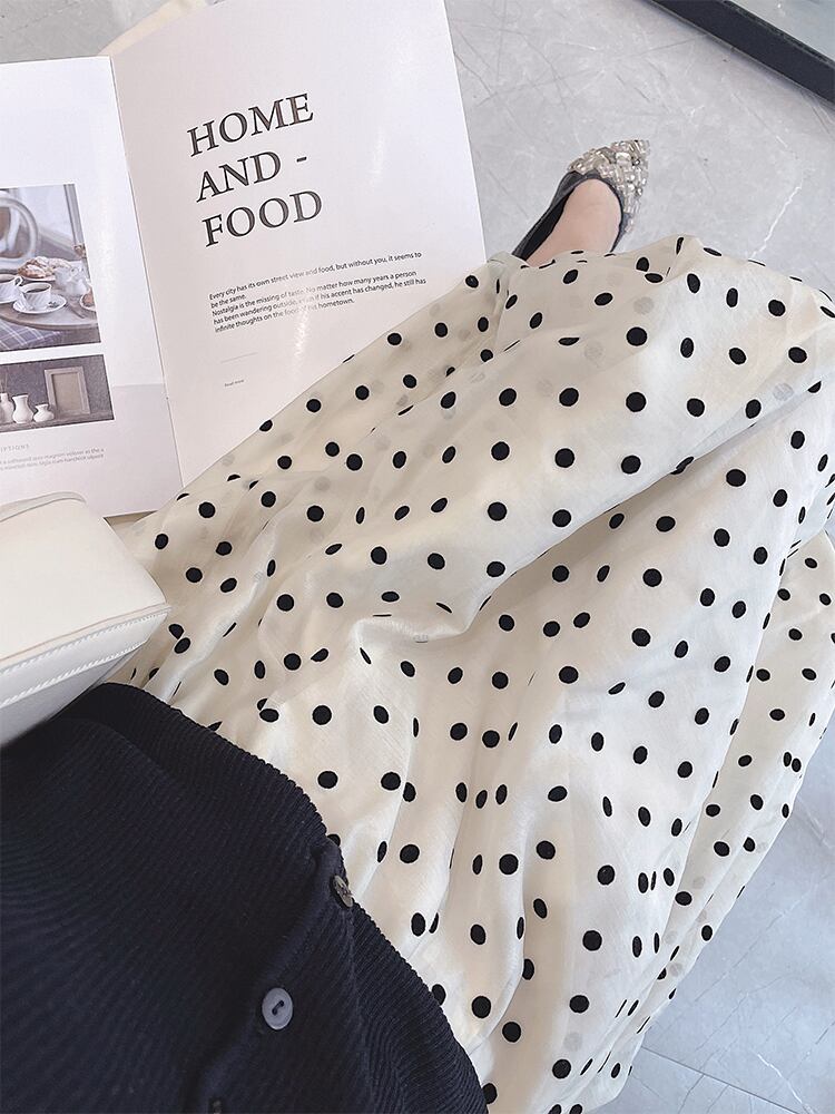 ポルカドット柄が旬なギャザースカート。