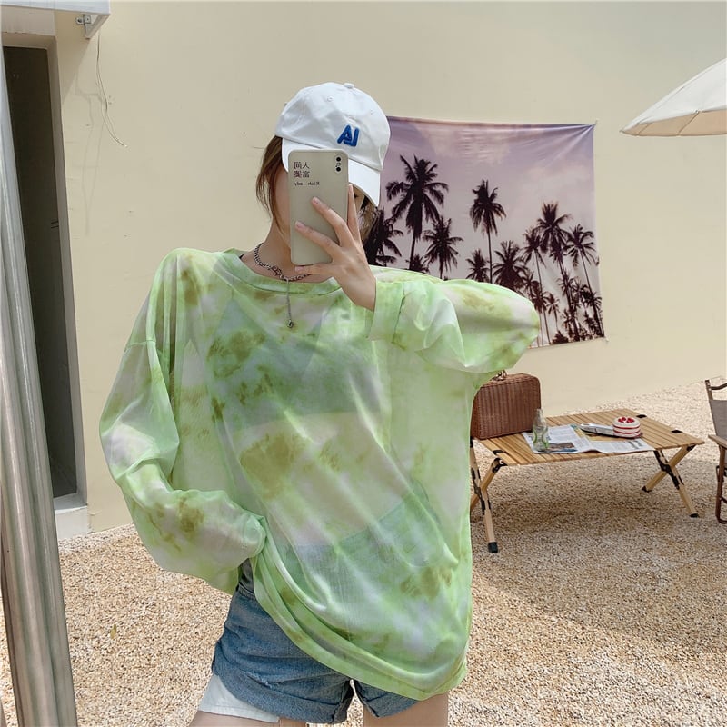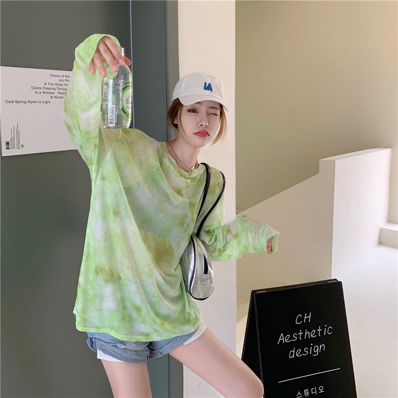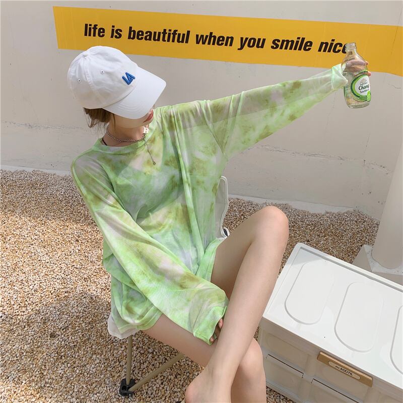トップス Tシャツ レディース 春夏 かわいい ゆったり 長袖 長袖 ボリューム袖 萌袖 Uネック ラウンドネック 襟なし BIGシルエット 透け感 シースルー プルオーバー 緑 グリーン パステルカラー 春カラー S M L XL かわいい きれいめ シンプル おしゃれ かっこいい アジアン エスニック リラックス タイダイ 韓国 韓国系 オルチャン 韓国ファッション スタイル 楽ちん 着回し モテ 体型カバー 重ね着 10代 20代 こなれ感 ラフ メンズライク マニッシュ ボーイッシュ