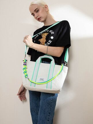 肩掛けができ、いつもの服装に合わせるだけで、トレンド感が増します。