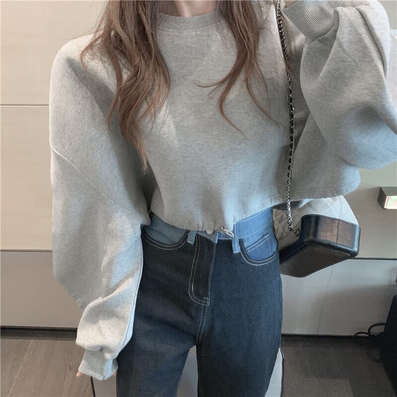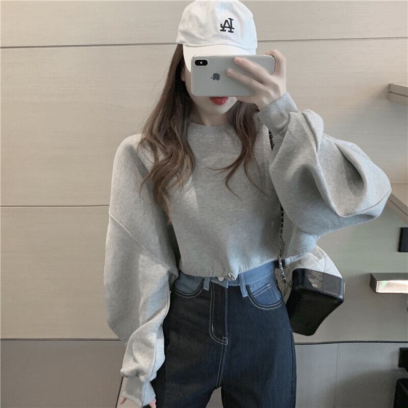 ボリューム袖スウェット レディース トップス カットソー トレーナー ショート丈 袖あり 長袖 ボリューム袖 クルーネック 襟なし 伸縮性 かわいい 大人可愛い シンプル カジュアル 大人 上品 お洒落 大人女子 こなれ感 ラブリー キュート ガーリー デイリーユース 無地 春 夏 秋 10代 20代 30代 40代 ビジネス OL 通勤 学生 通学 デート お出かけ 韓国 ファッション 体系カバー トレンド インスタ映え