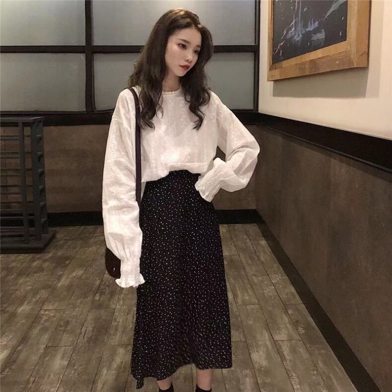 ワンカラー ブラウス カットソー チュニック レディース 春 秋 かわいい きれいめ ゆったり 白シャツ 長袖 ゆったり 長袖 ボリューム袖 フレアスリーブ フリル袖 フリルカラー スタンドカラー フレア セミフレア 裾イン レース 刺繍 シフォン 透け感 プルオーバー 袖コンシャス 白 ホワイト S M L XL かわいい 大人可愛い おしゃれ 小花柄 韓国 韓国系 オルチャン 韓国ファッション モテ 体型カバー インスタ映え こなれ感 ラフ ガーリー 抜け感 カジュアル オフィス OL 通勤 通学