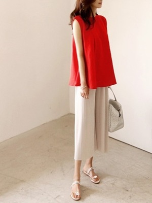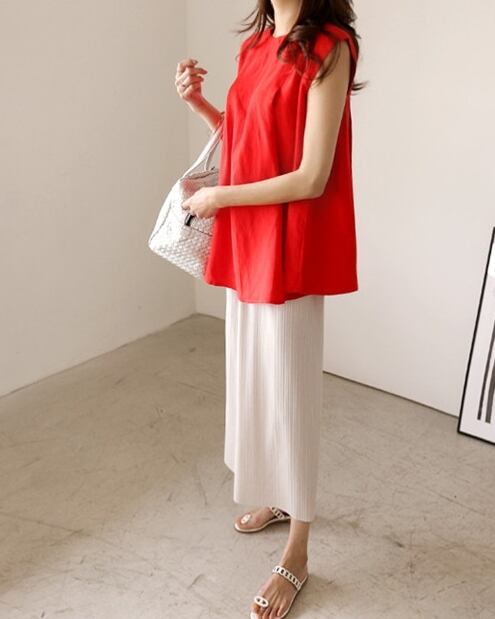 2色 トップス ブラウス カットソー チュニック レディース きれいめ ゆったり 袖なし ノースリーブ Uネック ラウンドネック フレア セミフレア スマート 裾ワイド 伸縮性 プルオーバー 赤 レッド ネイビー S M L XL 大人可愛い きれいめ シンプル 大人 上品 おしゃれ 無地 韓国 韓国系 オルチャン 韓国ファッション スタイル 楽ちん 着回し 体型カバー 定番 普段使い 20代 30代 40代 こなれ感 ラフ クール 抜け感 OL 通勤 お出かけ 公園デビュー 休日 ショッピング 映画館