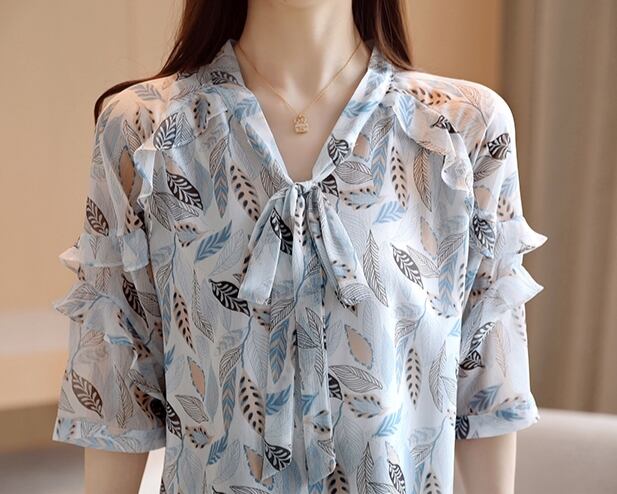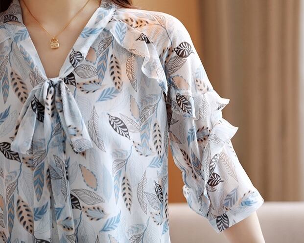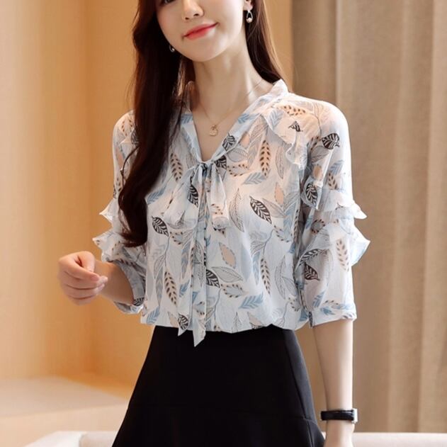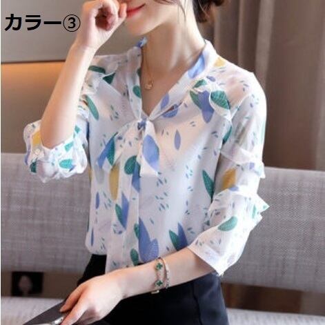 3色 トップス シャツ ブラウス レディース 春夏 きれいめ オフィス 長袖 七分袖 長袖 フレンチスリーブ フリル袖 Vネック ボウタイ フレア セミフレア 裾イン シフォン リボン 透け感 袖コンシャス 色展開 S M L XL 2XL 大人可愛い きれいめ シンプル 大人 上品 おしゃれ リーフ柄 ボタニカル プリント 韓国 韓国系 オルチャン 韓国ファッション 着回し 普段使い 20代 30代 40代 こなれ感 とろみ感 抜け感 オフィス OL 通勤 デート お出かけ 女子会 休日 ショッピング