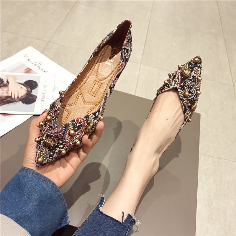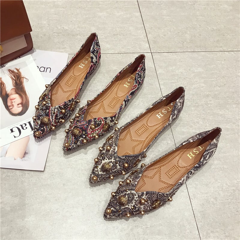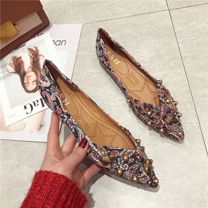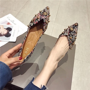 シューズ 靴 くつ クツ パンプス レディースシューズ レディースパンプス ポインテッドトゥパンプス フラットシューズ ぺたんこシューズ ぺたんこパンプス バレエシューズ フラット ぺたんこ ペタンコ ポインテッドトゥ 歩きやすい 履きやすい 走れる キラキラ 柔らかい 大人可愛い きれいめ 大人 おしゃれ お洒落 かっこいい 個性的 クール 主役級 存在感 こなれ感 アジアン エスニック エキゾチック ボタニカル ペイズリー オールシーズン シーズンレス 20代 30代 40代 レディース 休日