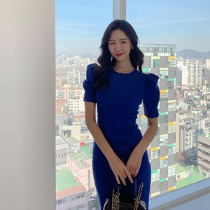2色 ワンピース 半袖 春夏 きれいめ フォーマル ワンピドレス ひざ丈 膝下 ミモレ ミモレ丈 7分丈 ミディアム丈 ミドル丈 ぽわん袖 ボリューム袖 Uネック ラウンドネック 襟なし スリム タイト 細身 リボン バックリボン スリット バックスリット 黒 ブラック 青 ブルー S M L XL 小さいサイズ 大きいサイズ ジャスト かわいい 大人可愛い きれいめ シンプル 大人 上品 おしゃれ ナチュラル かっこいい 無地 コーデ スタイル モテ 定番 キュート クール モード系 セクシー