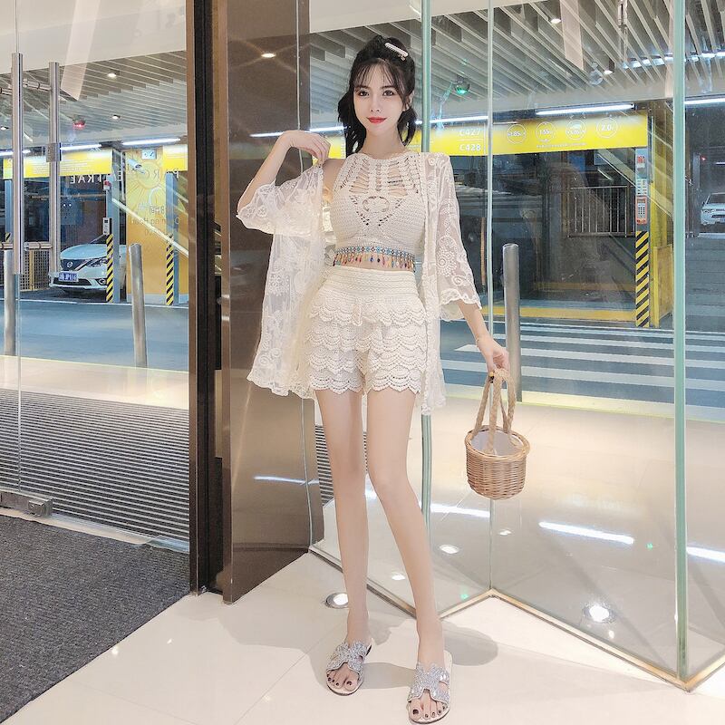 ニット水着 レディース 三点セット 水着 3ピース 体型カバー ショートパンツ ショーパン アメリカン カギ編み クロシェ編み セクシー 透かし きれいめ かわいい おしゃれ 夏 ビーチ 海 プール リゾート レース カーディガン 日焼け防止 女性らしい ビキニ カラフル ビーズ ビキニセット キュート ワンサイズ 清楚 上級者 ラブリー 元気な