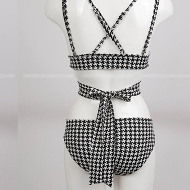 千鳥柄クロスビキニ レディース 水着 韓国風 セクシー水着 映える インスタ映え シンプル 可愛い 大人カジュアル ビキニ クロスストラップ バックリボン S M L XL プラスサイズ サイズ豊富 大きめサイズ カジュアル水着 セクシー エロかわ 大人可愛い 女性用 女性 谷間 キュート ラブリー スタイルアップ 海 リゾート 夏 サマー プール ビーチ 温泉 混浴 スタイリッシュ レトロ お姉さん 休日 ファッション デザイン性抜群 ファッショナブル ホリデー 夏休み デート パッド付き