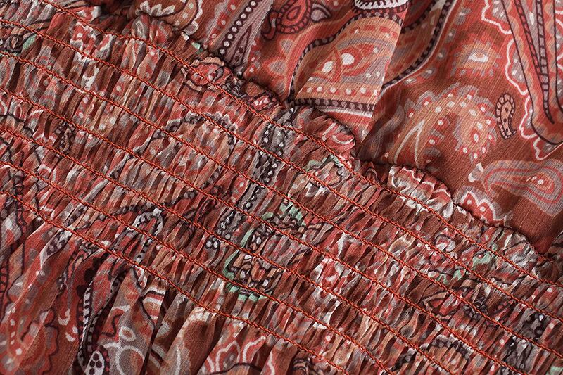 裾と肩のフリルと、キュッと引き締まったウエストラインがフェミニンな雰囲気をプラス。