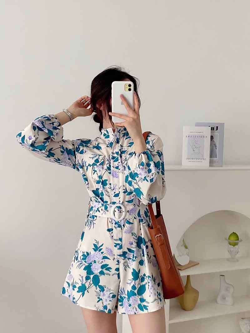 エレガントな花柄のショート丈ワンピース。
