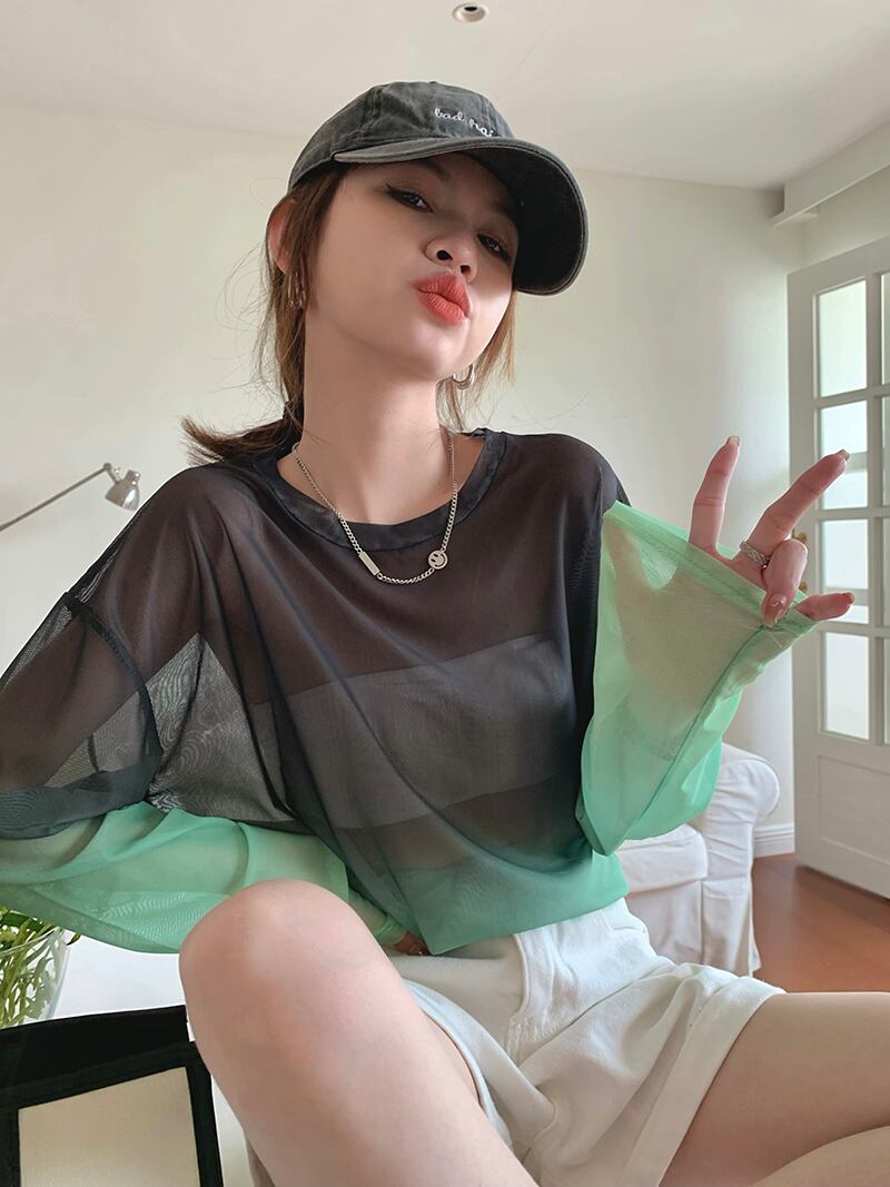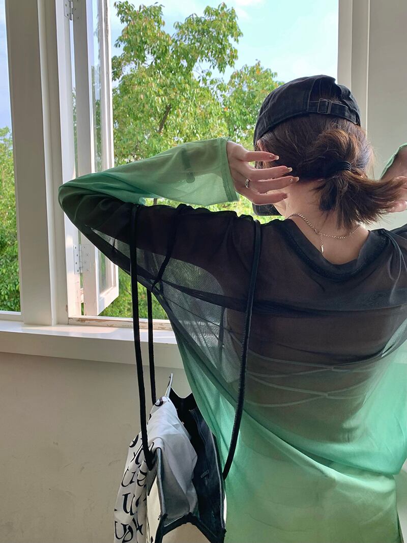 トップス Tシャツ シャツ レディース 春夏 カジュアル ゆったり 長袖 ゆったり 長袖 Uネック ラウンドネック 2重襟 ノーカラー 透け感 シースルー プルオーバー 重ね着 黒 ブラック 緑 グリーン ワンサイズ ゆったり ジャスト かわいい きれいめ シンプル カジュアル おしゃれ ナチュラル かっこいい リラックス 無地 韓国 韓国系 オルチャン 韓国ファッション コーデ スタイル 楽ちん 着回し モテ 普段使い インスタ映え 双子 10代 20代 こなれ感 ラフ メンズライク マニッシュ